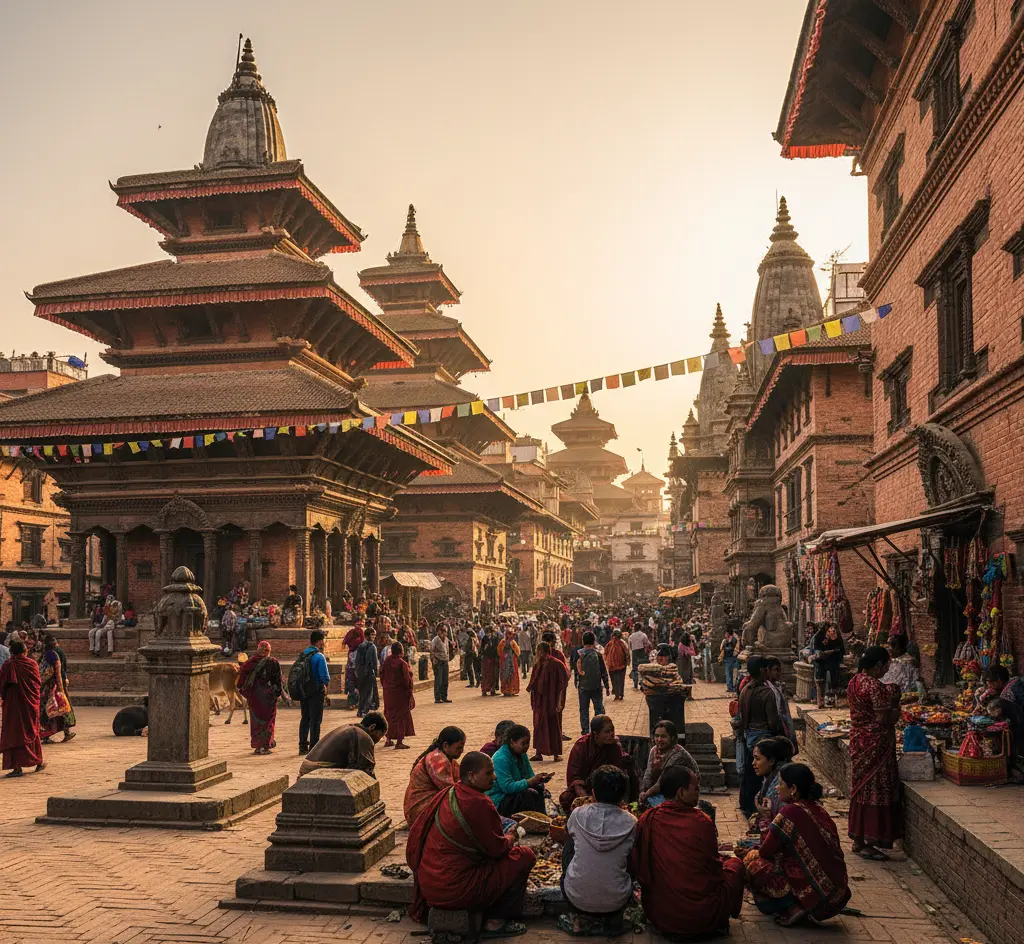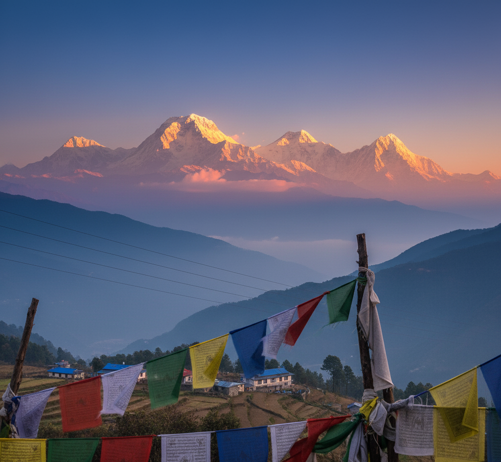 Return to Kathmandu and discover its UNESCO World Heritage treasures, including Swayambhunath Stupa and Durbar Square. Continue to Nagarkot, famed for its panoramic Himalayan views, before concluding your tour with a relaxing departure.